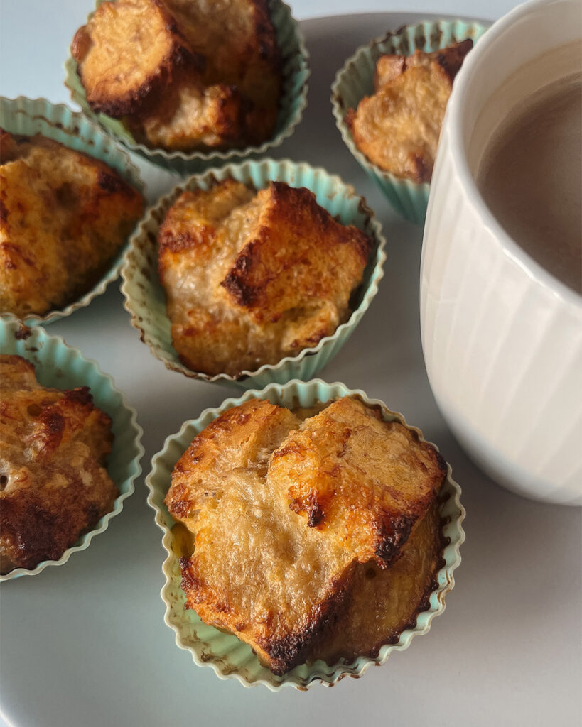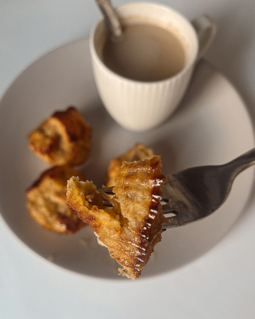 Tálaláshoz tehetsz rá natúr joghurtot, de önmagában is nagyon finom a muffin formában készült banános bundás kenyér.