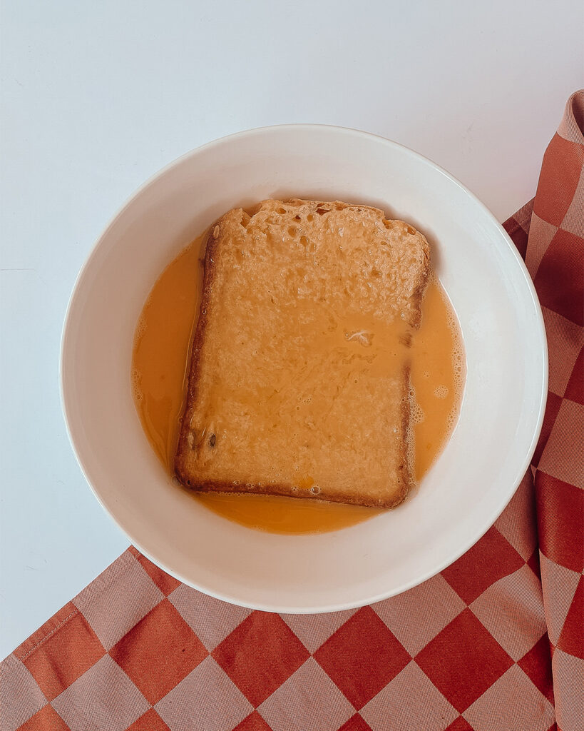 3. a kenyereket áztassuk rövid időre a tojásos keverékbe