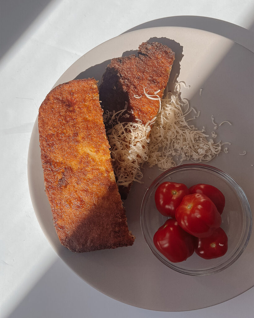 • sajttal és paradicsommal