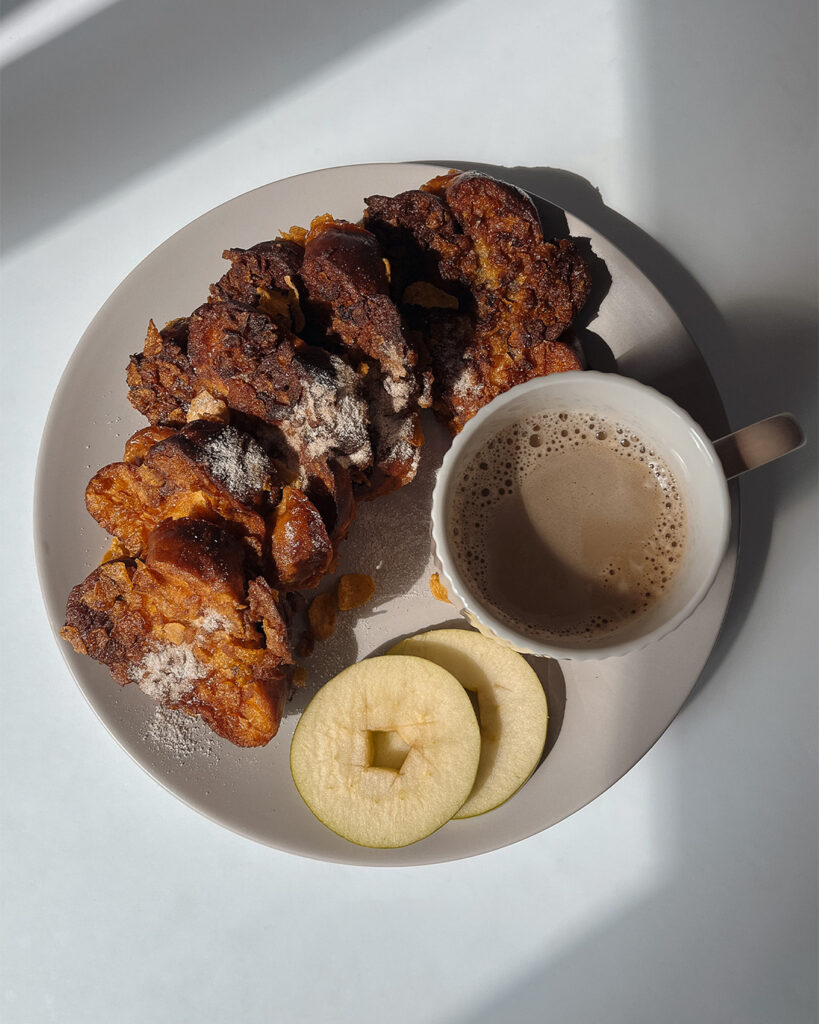 A ropogós édes bundás kalács önmagában, porcukorral, fahéjas cukorral is finom. Ha kiegészítenéd valami egészséges összetevővel, feldobhatod friss gyümölccsel. A fahéj és az alma együtt verhetetlen páros!